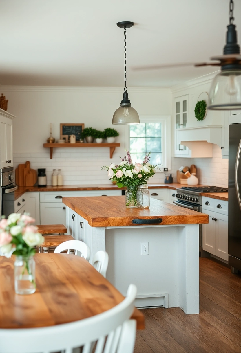 - Incorporate a large wooden island for functionality and style.