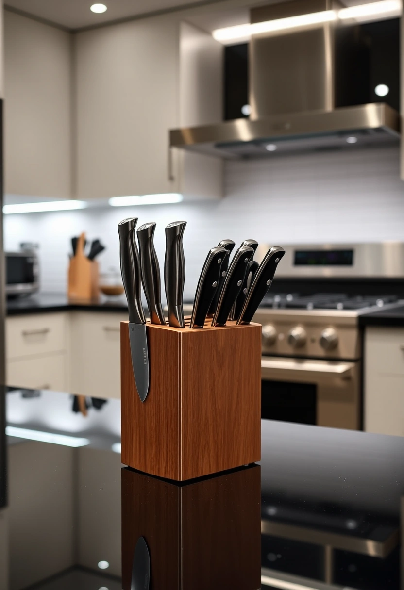 - Utilize classic wooden knife blocks for a timeless appeal.