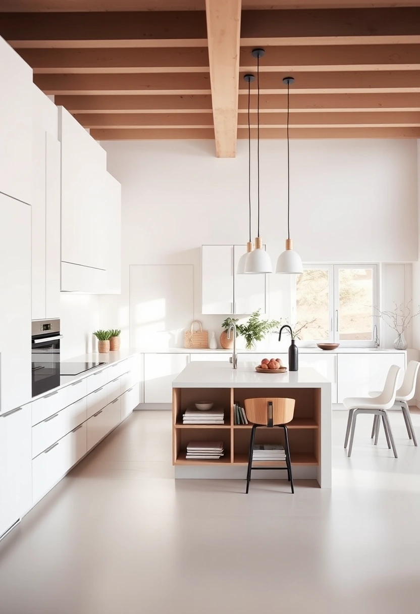 The minimalist decor elements contribute to a serene environment, making it an ideal space for both cooking and entertaining.